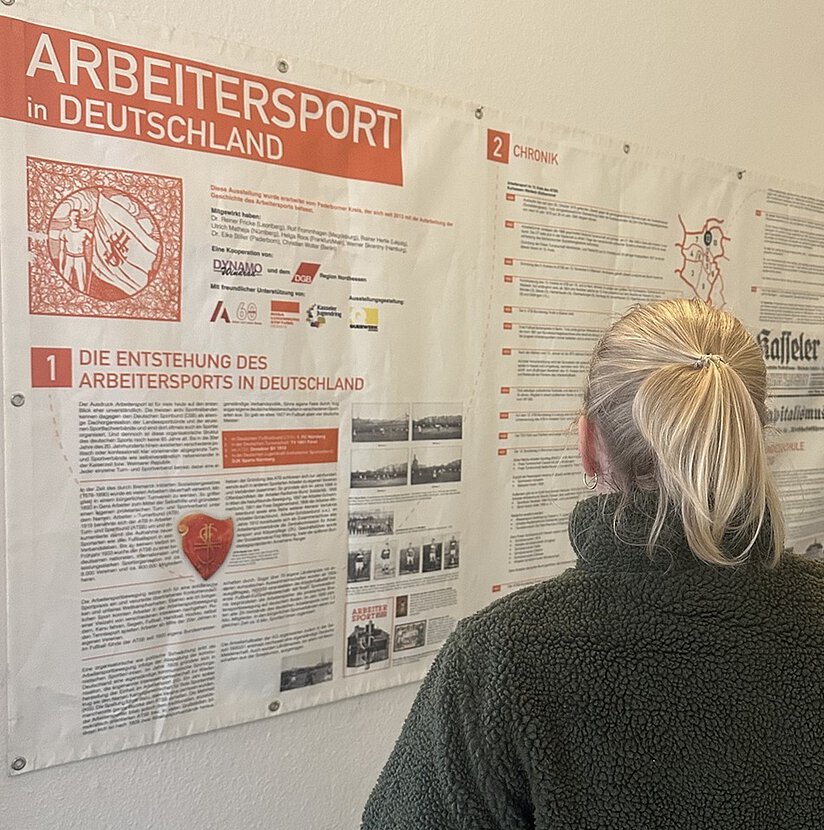 Bis 1933 gab es in Deutschland und Europa keine einheitliche Sportbewegung wie wir sie heute kennen. Vielmehr existierten verschiedene weltanschaulich und religiös ausgerichtete Sportverbände, die scharf voneinander abgegrenzt ihre eigenen nationalen und internationalen Wettbewerbe, Meisterschaften und Olympiaden austrugen. Auch in Kassel bestanden bis 1933 zahlreiche Arbeitersportvereine, bevor sie von den Nazis nach deren Machtergreifung zerschlagen und ihres Besitzes beraubt wurden. 1930 waren im Arbeitersportkartell Kassel, in dem die Arbeitersportvereine und andere Gruppen wie die Naturfreunde und die Arbeiterwohlfahrt zusammengeschlossen waren, in 270 Vereinen etwa 13.000 Mitglieder organisiert. Die Ausstellung erzählt die Geschichte des Arbeitersports (vor allem des Fußballs) vom Ende des 19. Jahrhunderts bis 1945 in Deutschland und Kassel. Darin wird z.B. die Geschichte des Nordstadtvereins Eintracht Kassel erzählt, dem erfolgreichsten Fußball-Verein des Arbeitersports der 1920er Jahre. In Kassel fanden auch zwei Länderspiele mit jeweils über 10.000 Zuschauern auf der Hessenkampfbahn statt.