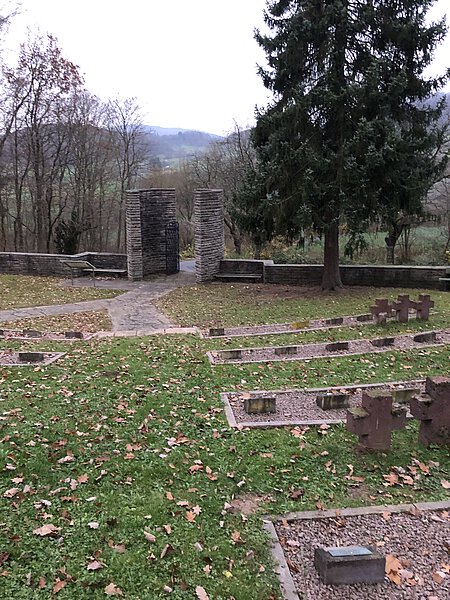 Sie sind nun an der letzten Station des QR-Code Rundgangs angekommen. Außerhalb der Klostermauer, etwa 500 Meter von der Anstalt entfernt, wurde 1877 der erste Anstaltsfriedhof angelegt. Nach mehreren Beschwerden über den verwahrlosten Friedhof wurde 1926 das vor Ihnen liegende Grundstück, unmittelbar neben dem Friedhof der Gemeinde Breitenau, angekauft. Hier sind auf der einen Seite Angestellte der Anstalt und deren Angehörige bestattet worden, auf der anderen Seite Gefangene. Um Beerdigungskosten zu sparen, wurden überdies einige der Toten der Anatomie in Marburg zugeführt. Diese setzte sie in der Medizinerausbildung ein und bezahlte der Anstalt pro Leiche ein bestimmtes Entgelt. Auf dem Anstaltsfriedhof wurden auch die Opfer des "Arbeitserziehungslagers" (AEL) beerdigt, unter ihnen Willy Hermann Tietz, der aus antisemitischen Gründen verfolgt und am 23. April 1944 ermordet wurde.